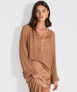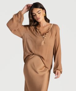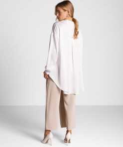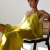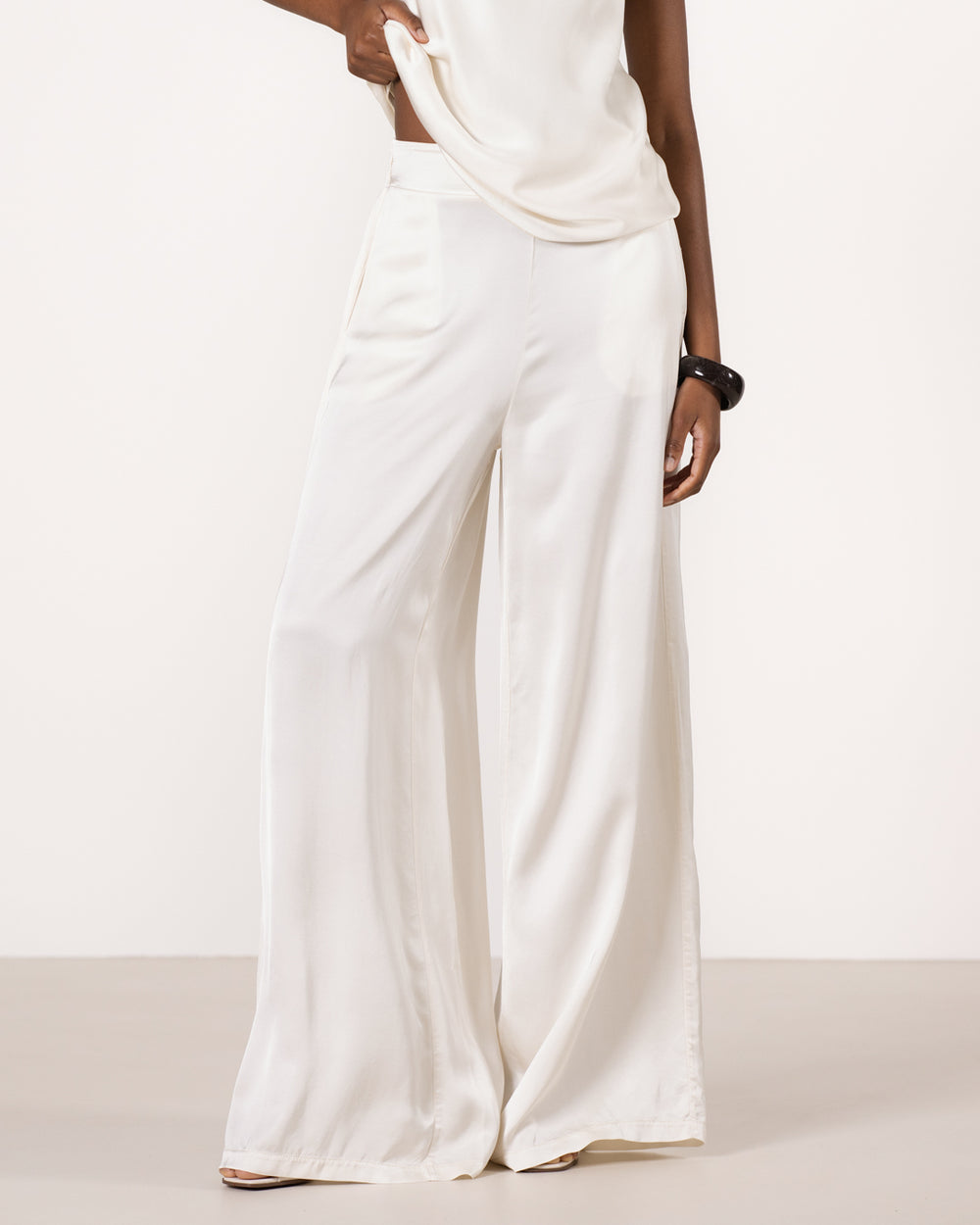 - Luxe satin with subtle sheen and fluid drape