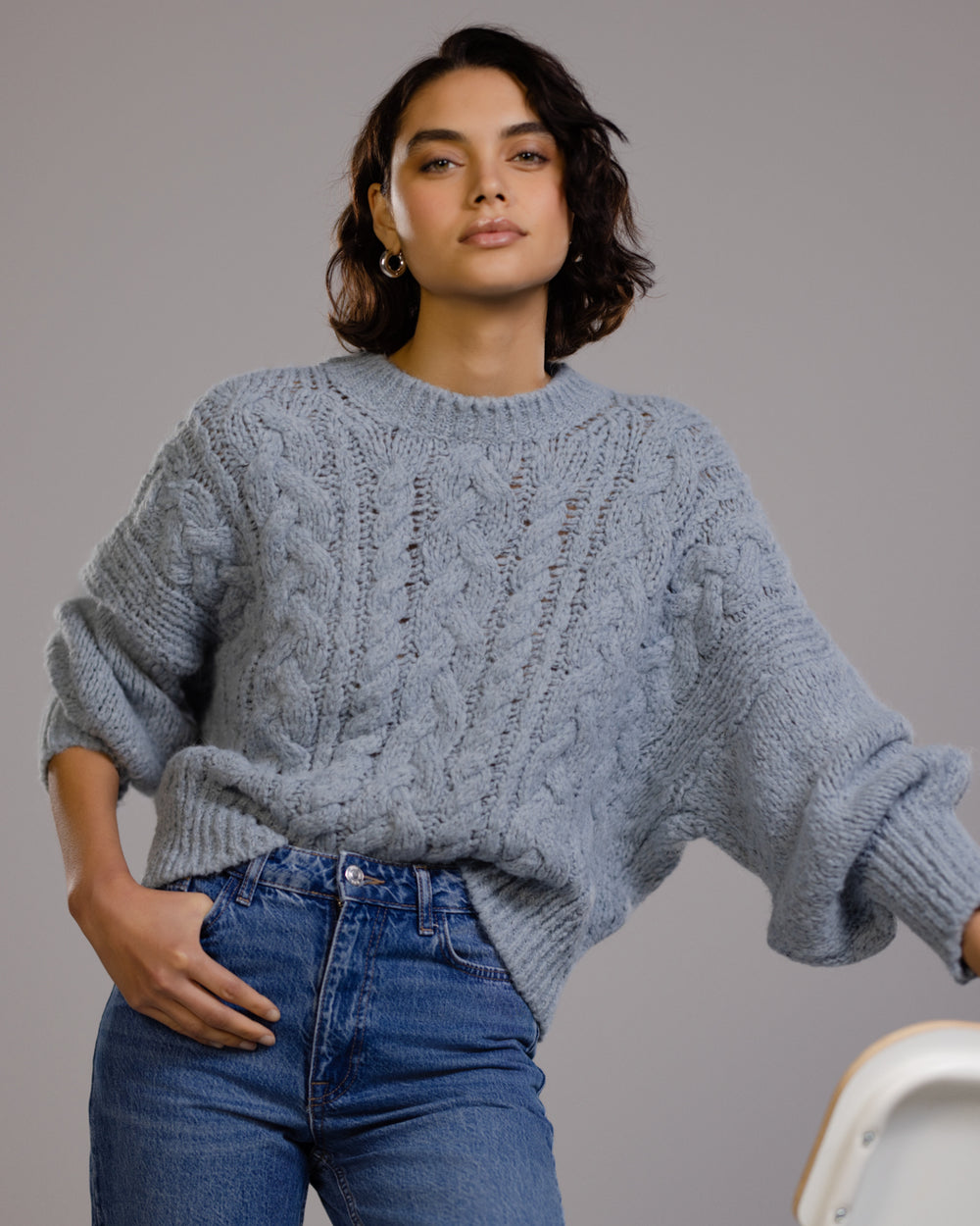 JAKI Women’s Heather Cable Sweater | Light Blue