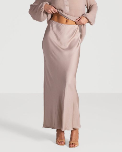 JAKI Women’s Rosalind Lightweight Satin Skirt | Dusty Pink